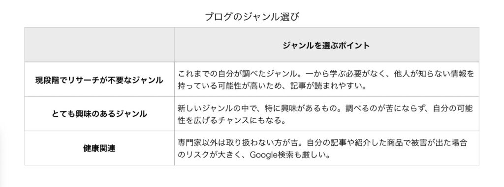 この点を踏まえた上で、ブログのジャンル選びは以下のようになります。