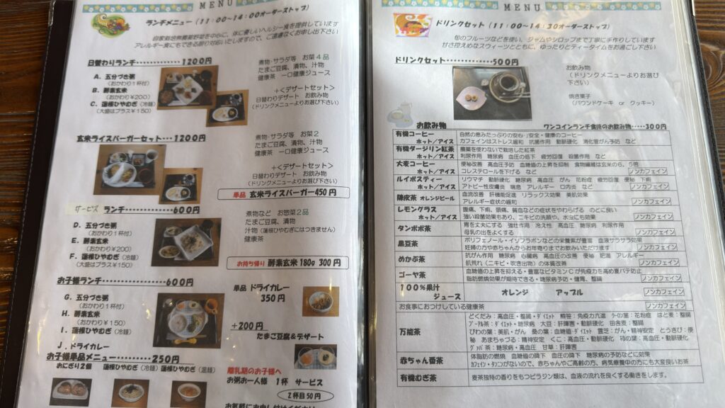 メニューの一部。ラインナップから「からだにやさしい」ことが伺われます